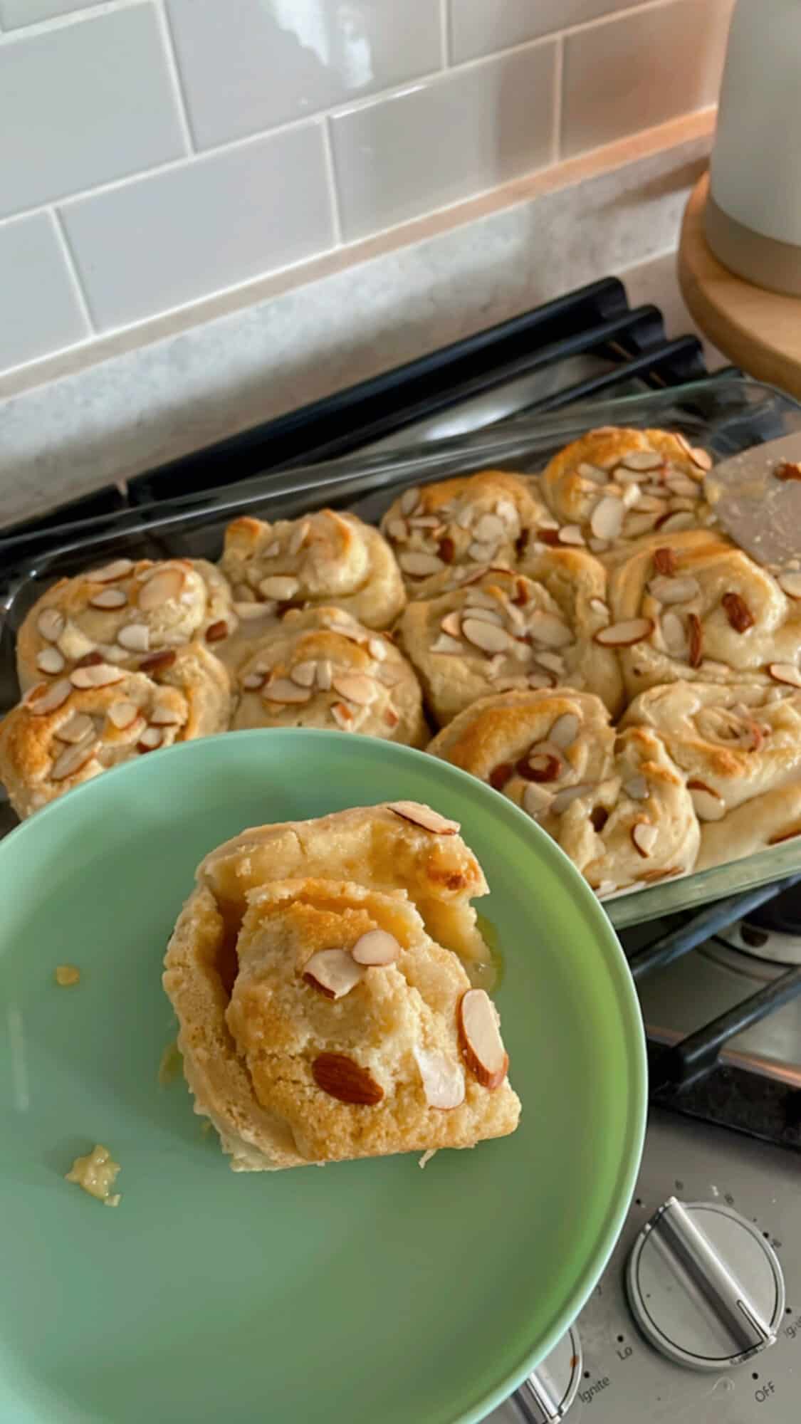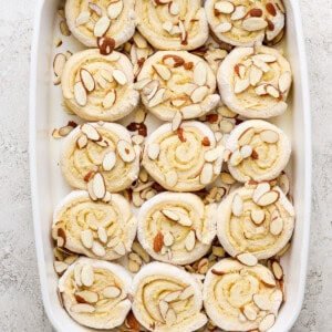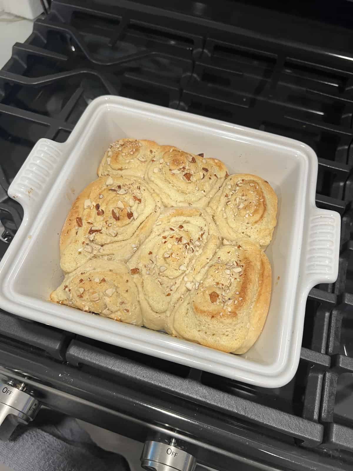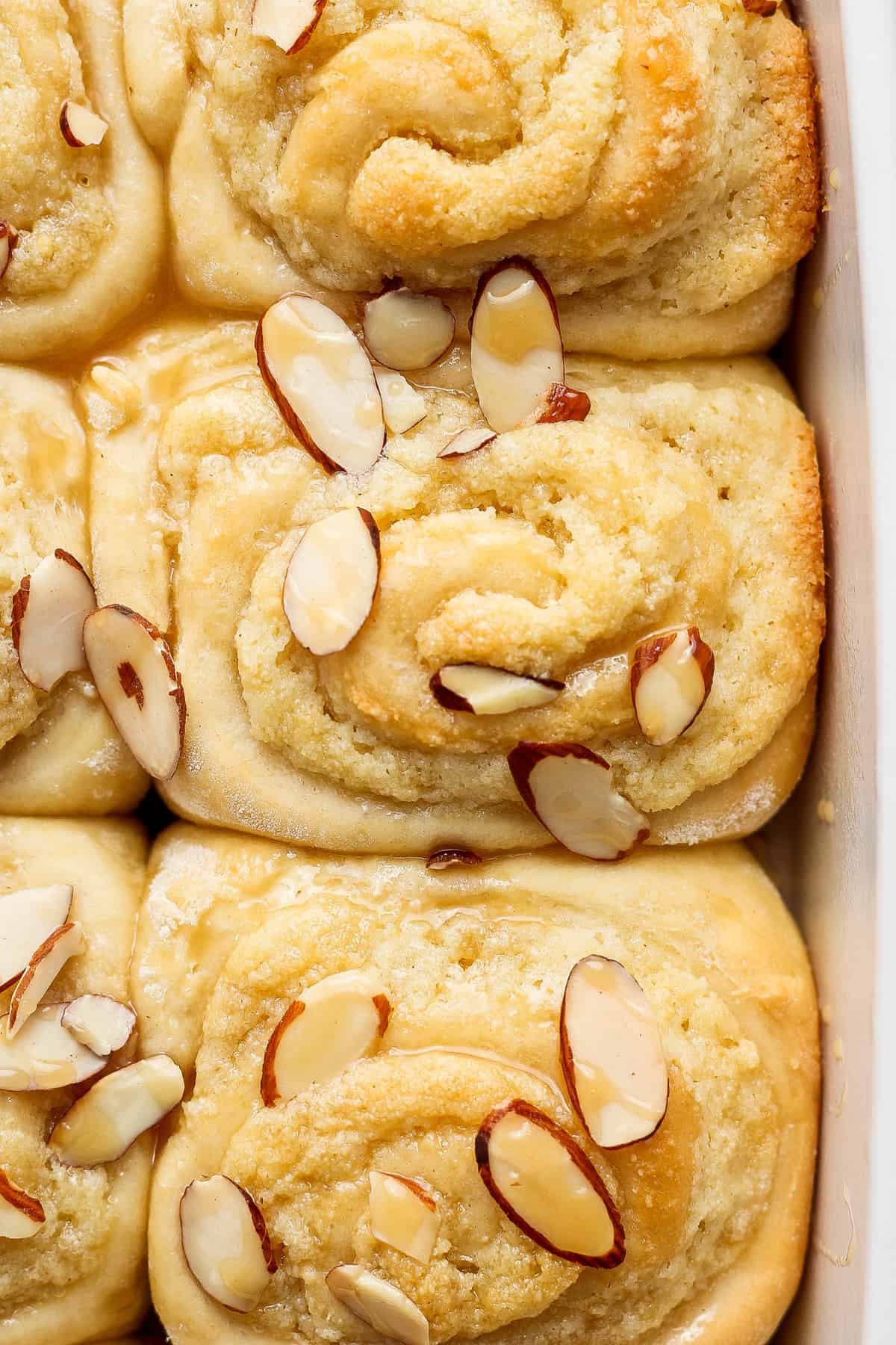 Amazing almond flavor: we love this almond-y twist on a classic cinnamon roll. You’ll find amazing almond flavor in every bite — because there is almond extract AND almond flour AND sliced almonds in the filling ๐