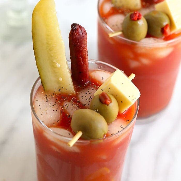 Start your next weekend brunch off with this bloody mary recipe! Forget those store-bought mixes and make this homemade bloody mary recipe in the comfort of your own home. Don’t forget all the meat sticks, cheese, and fermented goodness that goes along with the perfect bloody mary, too!