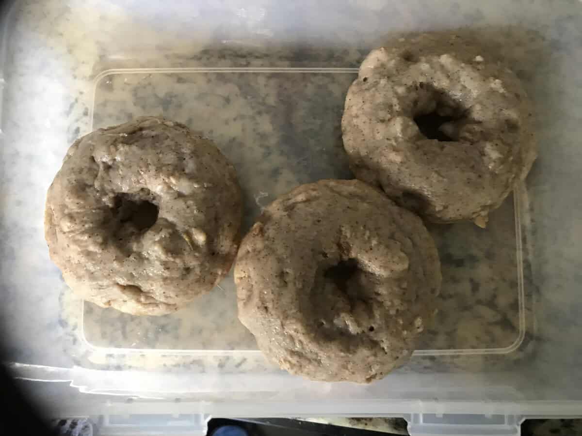 - Transfer the dough to a gallon storage bag. Cut the tip off and pipe it into the donut pan.