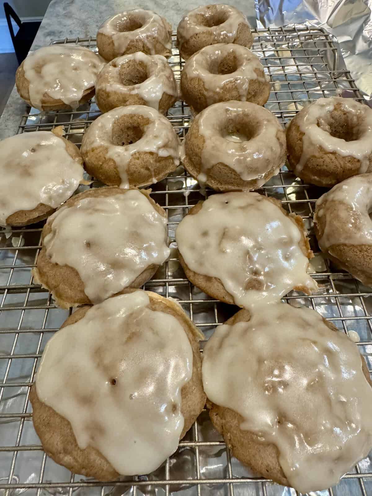 Let your apple cider come to room temperature: If your apple cider in the glaze is cold from the fridge, it will make the butter seize up and yield a very thick glaze, which isn’t what you want. You can either let it come to room temperature before using it or warm it up in the microwave for 10 seconds and mix.
