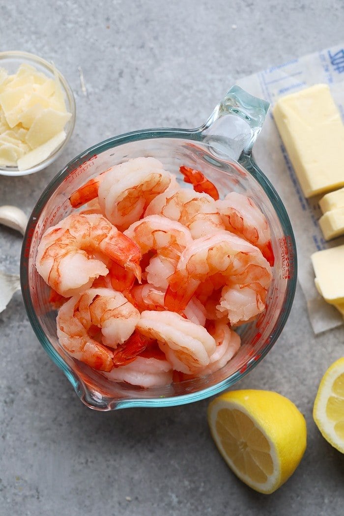 Shrimp is something I’ve been eating more of because it’s just convenient and so tasty (oh, and super high protein!). I like to buy frozen shrimp from the grocery store because then I have it on hand whenever I need it.