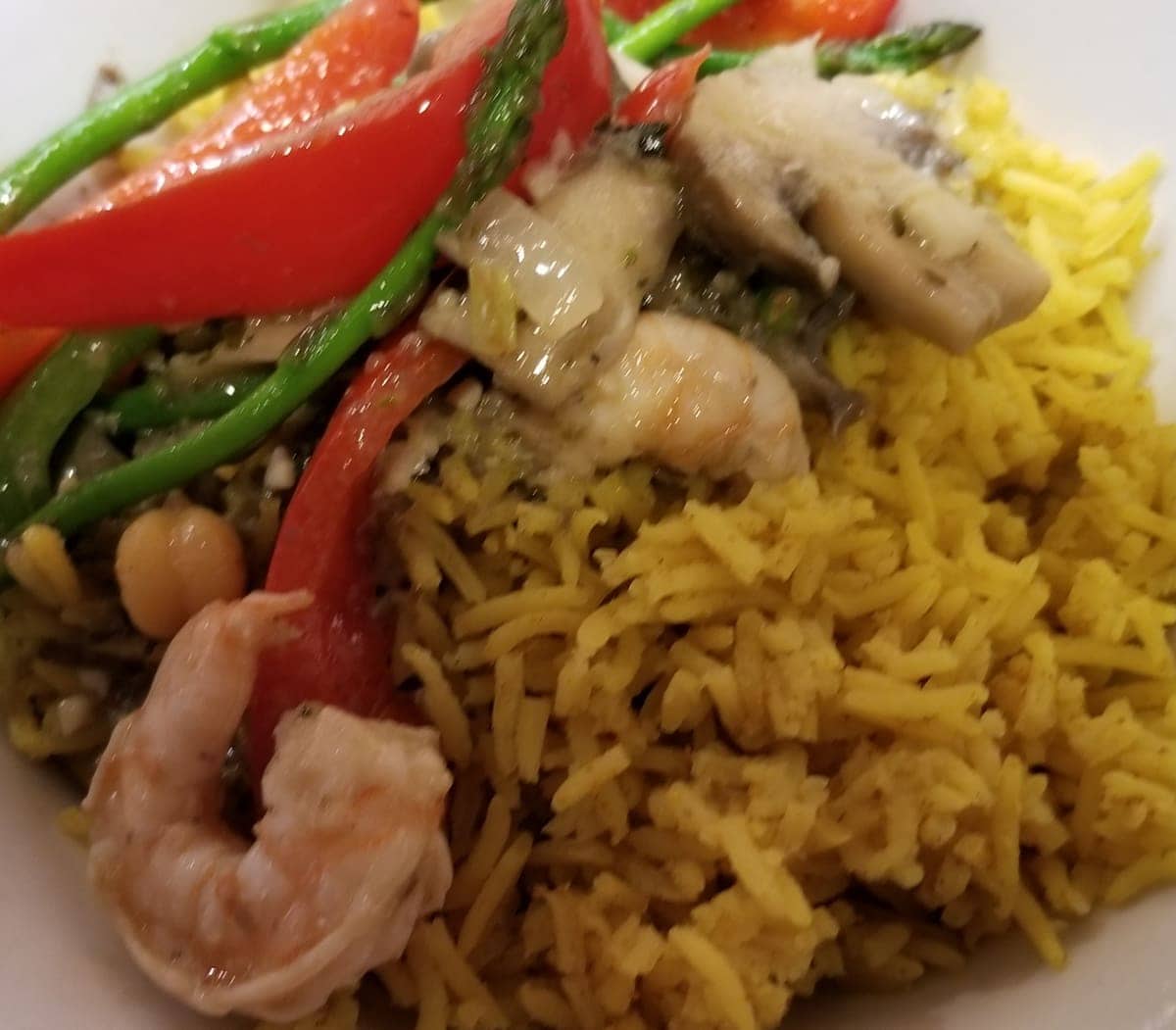 This turned out so good. I put red and green bell peppers mushrooms, asparagus and garbanzo beans. I didn’t use pasta. I served it over yellow rice.