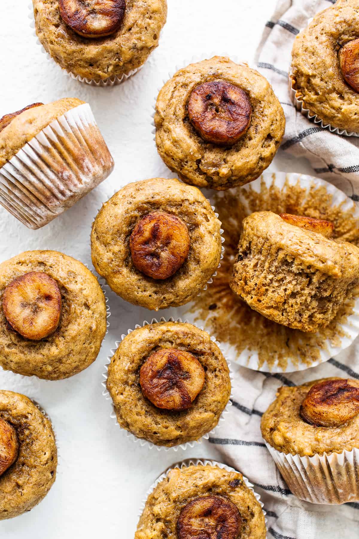 - Feel free to double the recipe for the banana topping and place two caramelized banana slices on top of each muffin.