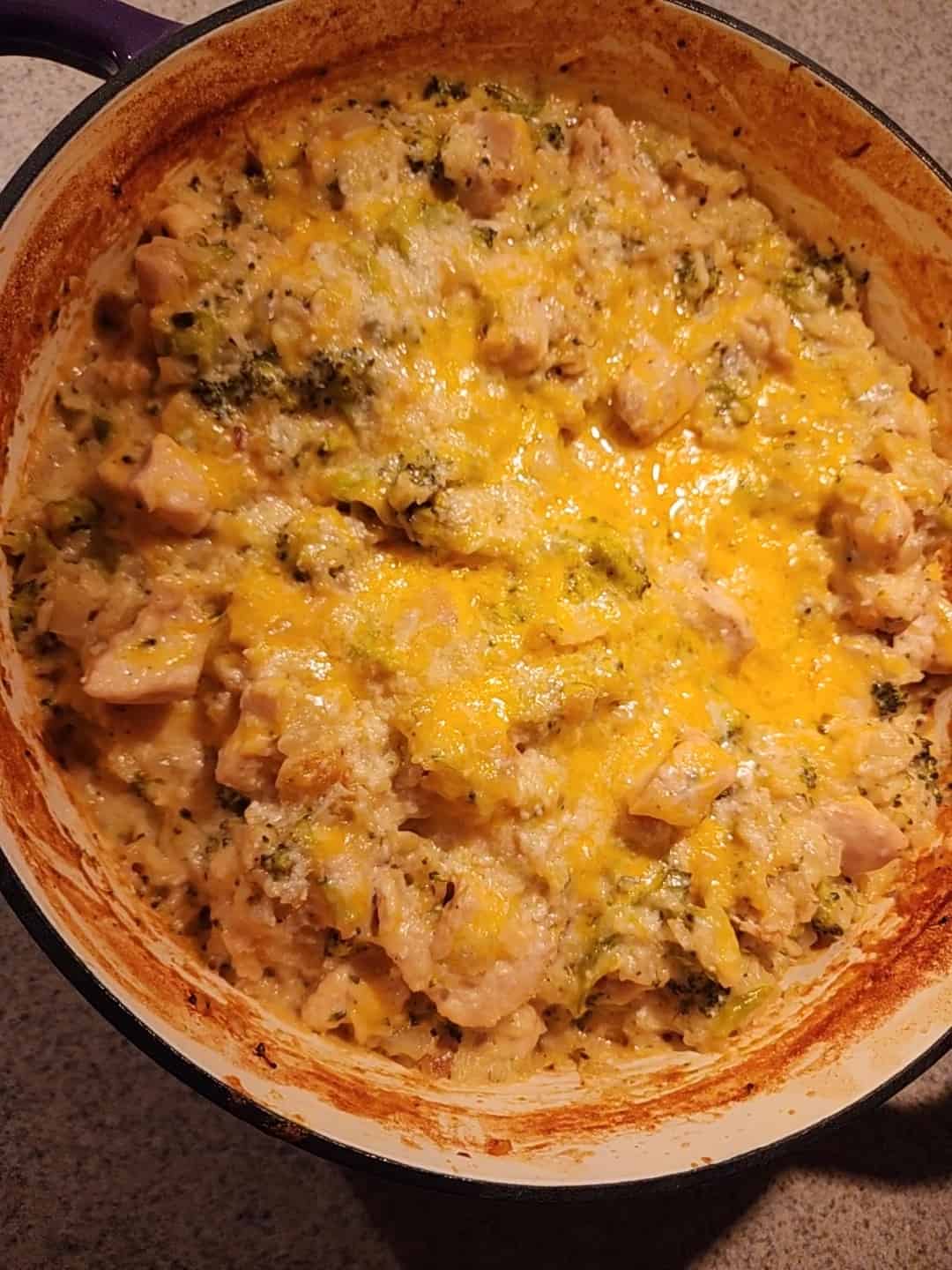 I followed the directions and was hesitant to make the sauce without first making a roux, but I figured the great reviews meant it would turn out well. I was disappointed. There was just thin cheesy broth in the bottom and the chicken, rice, and veggies were more boiled than baked.