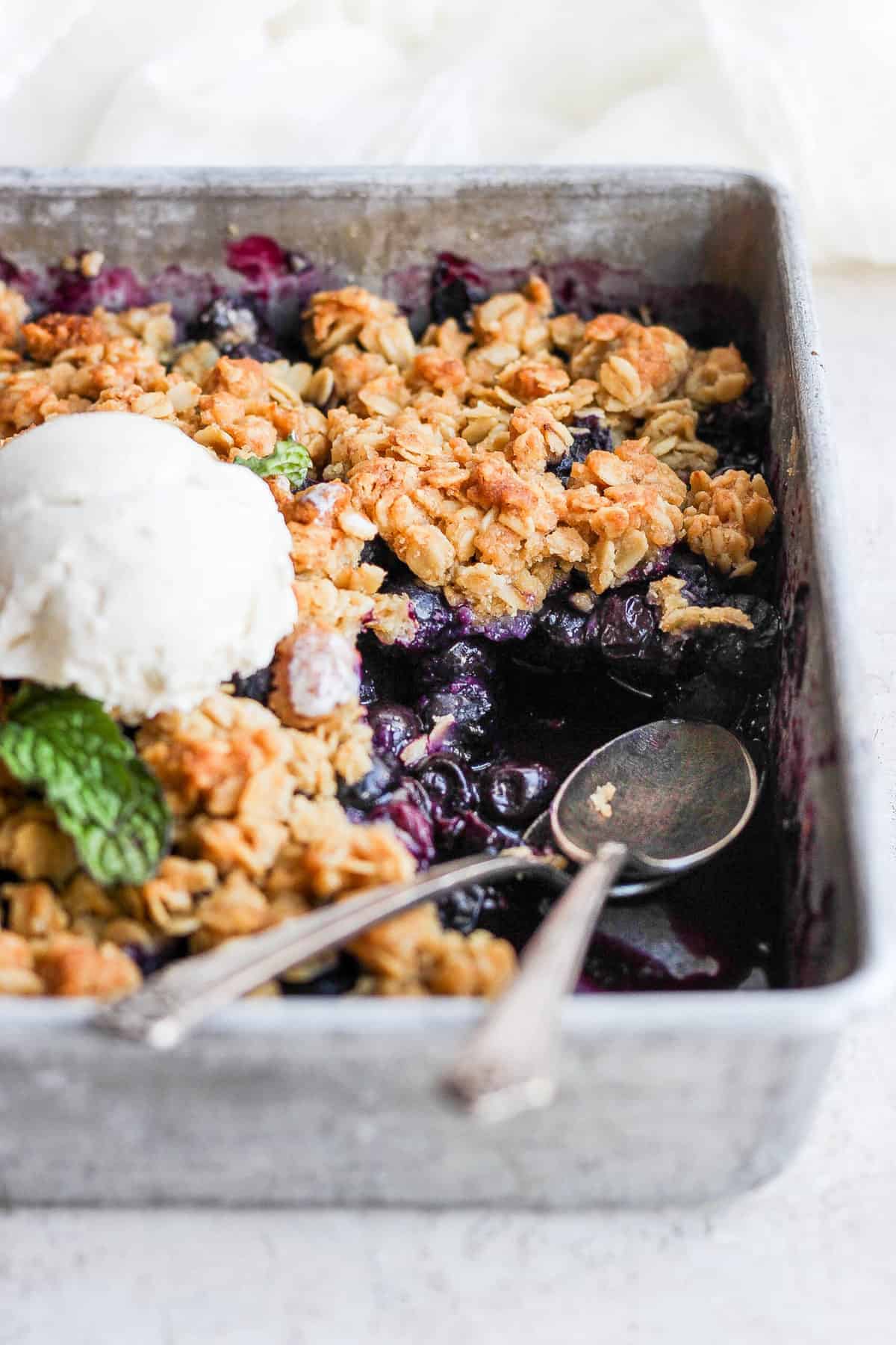 We always prefer fresh blueberries but frozen blueberries will work just fine! You can also use blueberries, raspberries, and strawberries! If you have all three check out our triple berry crisp!