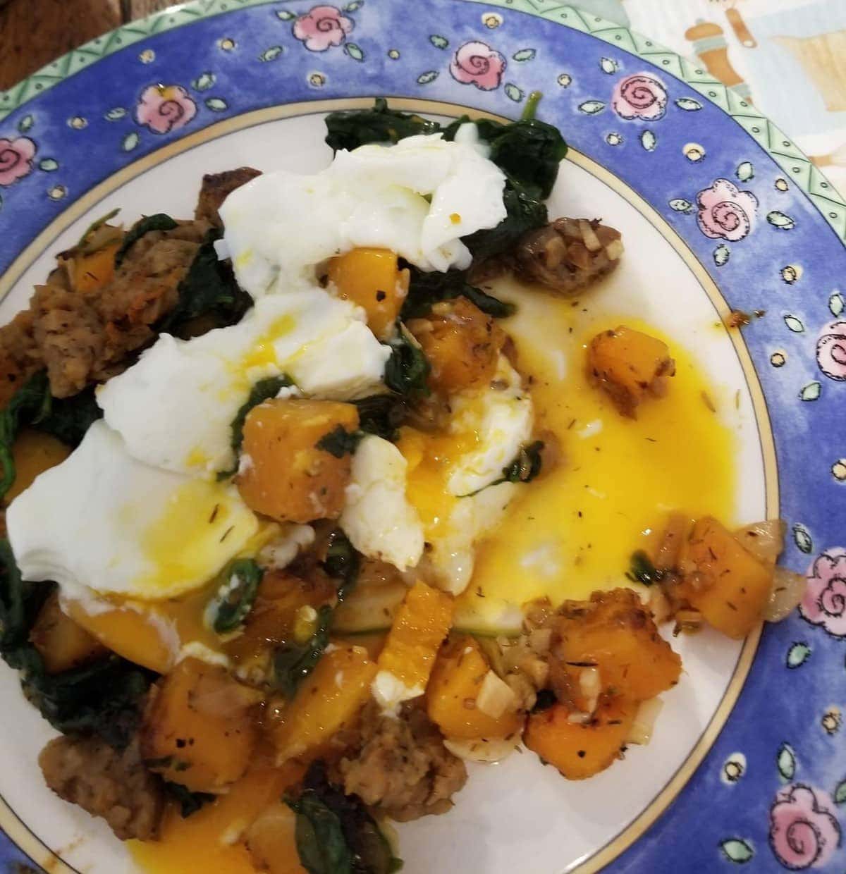 I had a half a squash I needed to use up and found this recipe during a search. OMG! So good! Iโm vegetarian so used the Kashi Go Lean sausage which was delicious. I made poached eggs separately because I only wanted to eat half and have half left for tomorrow and didnโt want to get egg in the leftover part and used 1 tsp of dried thyme because I didnโt have fresh. This was amazing and a definite do again! And I felt really healthy eating it! Thanks for this!