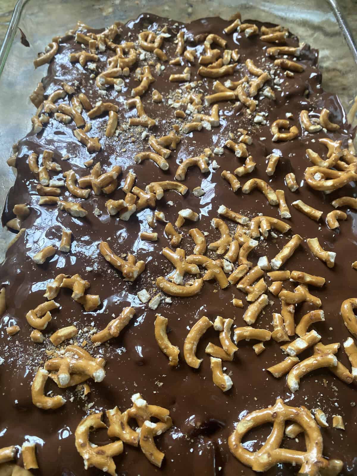 - Feel free to top the mixture with other ingredients along with the pretzels.