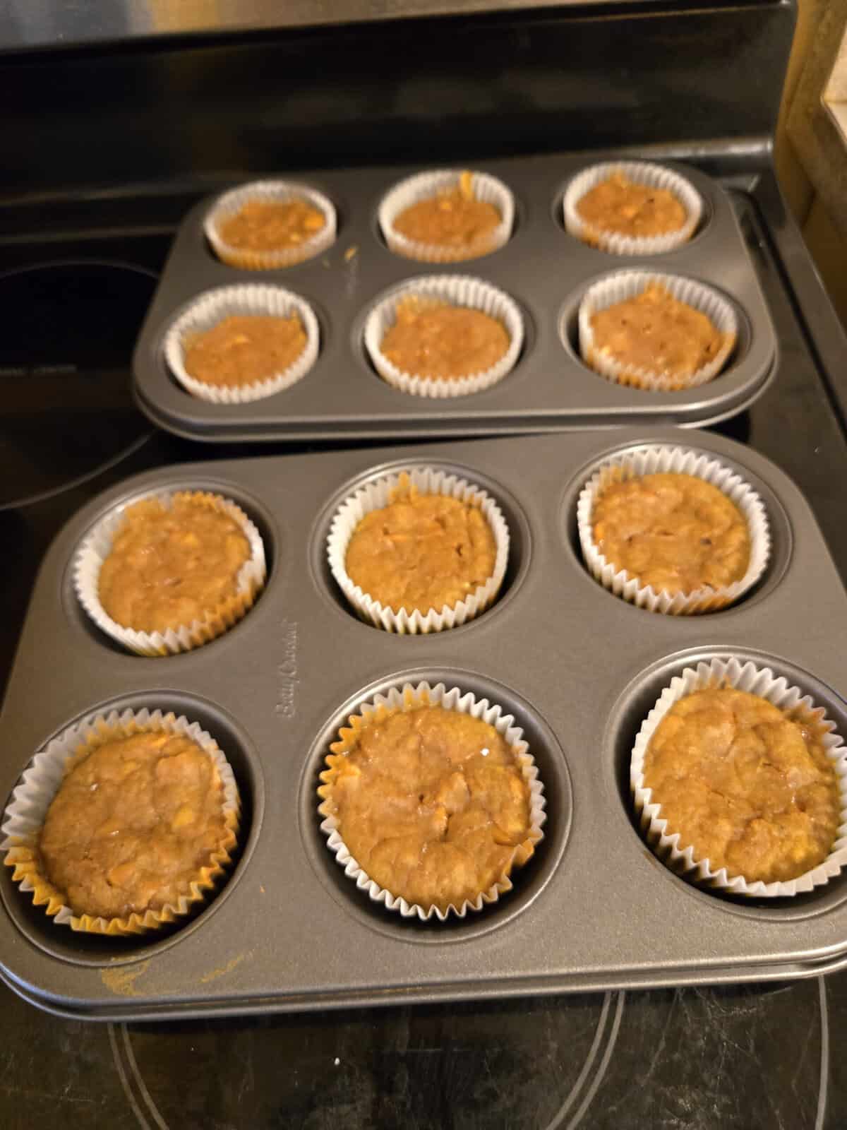 Instead of chocolate chips i only had butterscotch chips. Probably should have measured but it was only half a small bag, still muffins took extra time to filly cook. Still couldn’t peel paper liners off cooked muffins. Tasty though