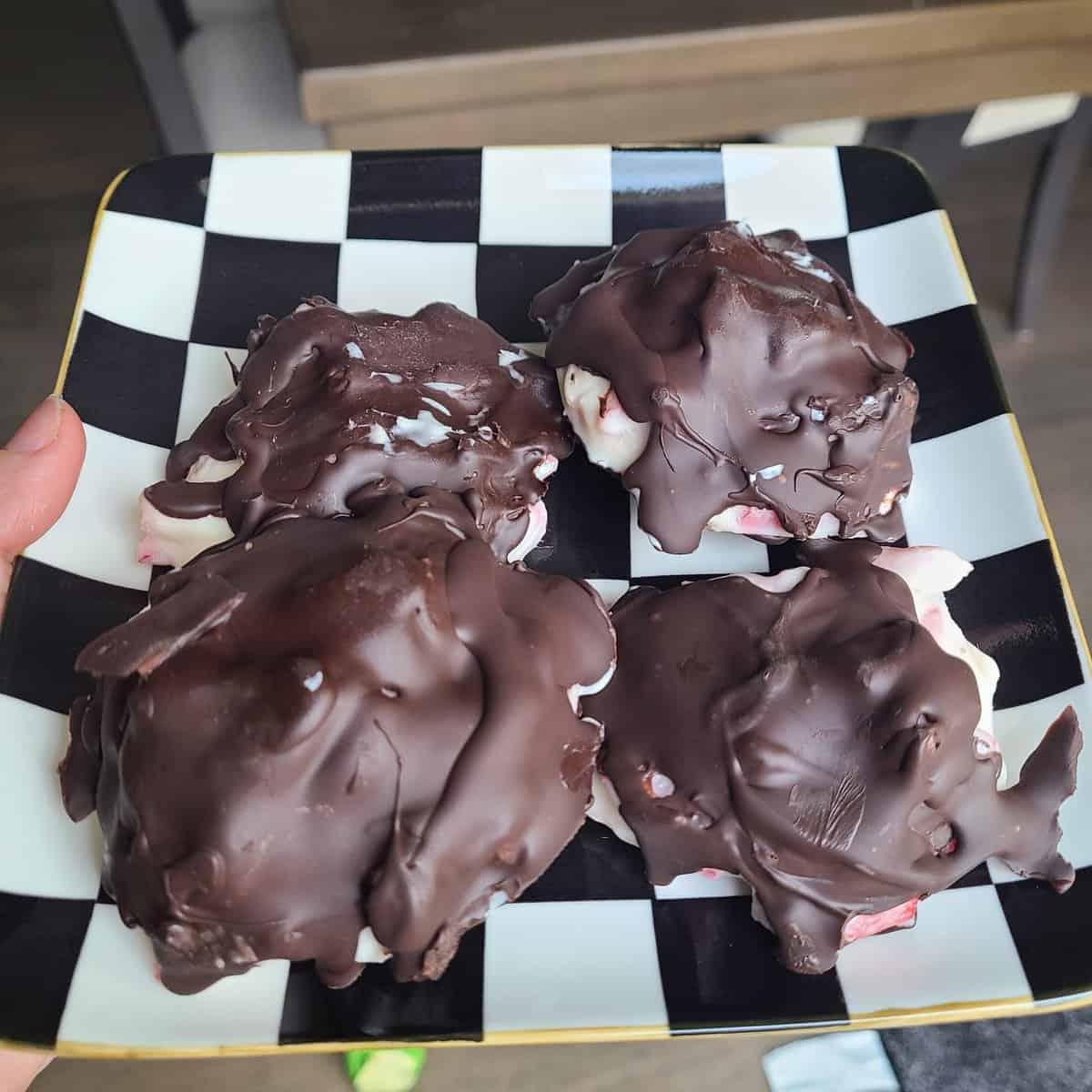 - When the chocolate is frozen enjoy it immediately or store the clusters in freezer-safe bags.