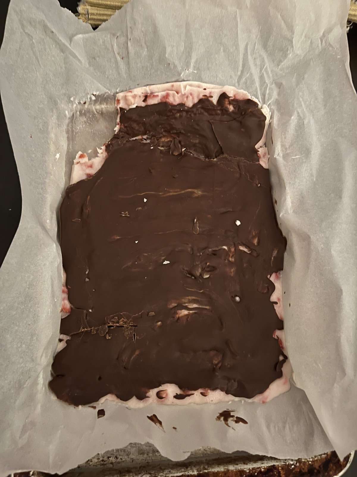 - Return the baking sheet to the freezer for 15 minutes or until the chocolate is hardened.