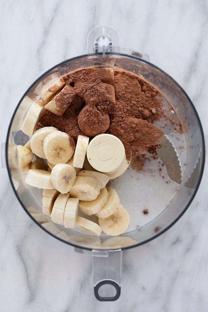 The basis of all of our nice cream recipes are frozen bananas. Then, to make each recipe unique, you add in flavor combinations! Here’s what you need for this recipe:- Frozen banana