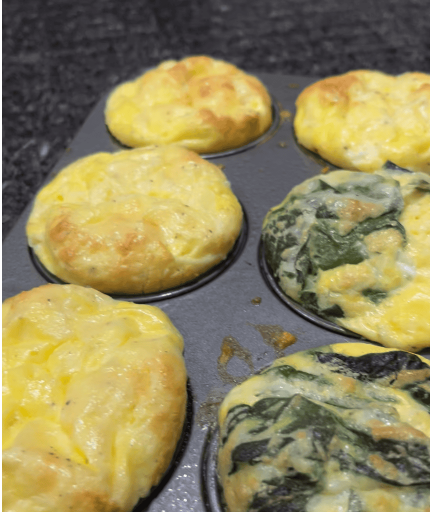 - If you are using a silicone muffin mold, be sure to place the mold on a baking sheet BEFORE filling it, or you will be left with an egg-y mess (we know from experience 😬).