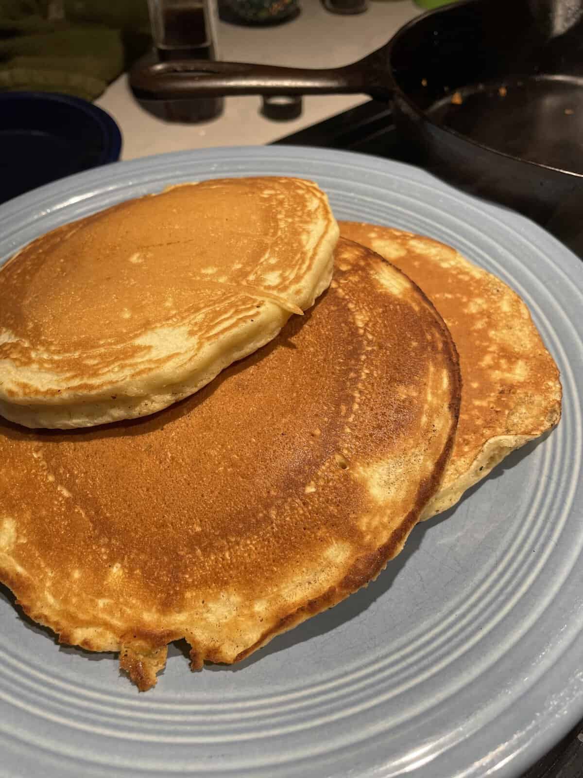 Cook pancakes immediately: once your batter is ready, make sure to cook the pancakes immediately. If you let the batter sit, the baking powder will deactivate and your pancakes won’t be as fluffy.