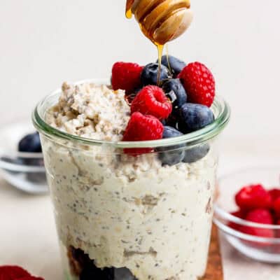 These blended cottage cheese overnight oats are a legendary new way to change up your overnight oat game. Creamy, protein-packed, and perfect for a make-ahead breakfast option!