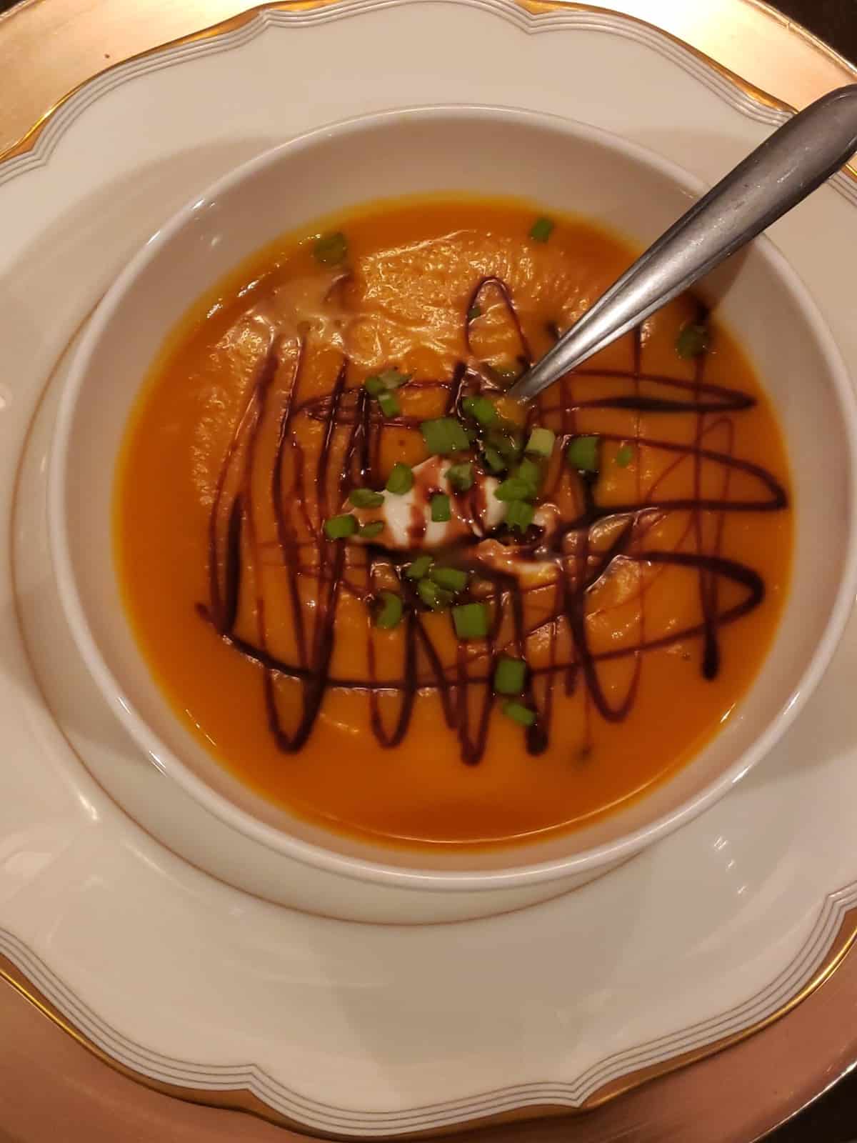 This was the send time making this delicious soup. My husband doesn’t care for cinnamon in savory, so I left it out. The 2nd time, I added 2 bay leaves (remember to take them out before blending). I think the ACV has some magical powers of loosening the skin from the squash (I forgot this time and the skin was a pain; last time it fell right off). I added a dolip of non-dairy sour creme, a drizzle of balsamic glaze, and cut green onions. Absolutely making this again and again!