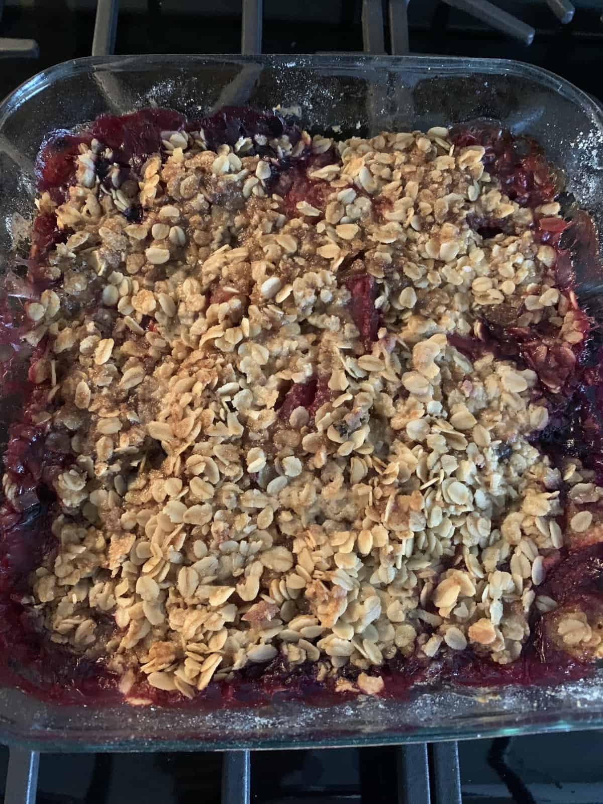 You know your berry crisp is done when the berries have broken down and the juices begin to bubble. The crumble topping should also be golden brown.Can I use a different-sized pan?