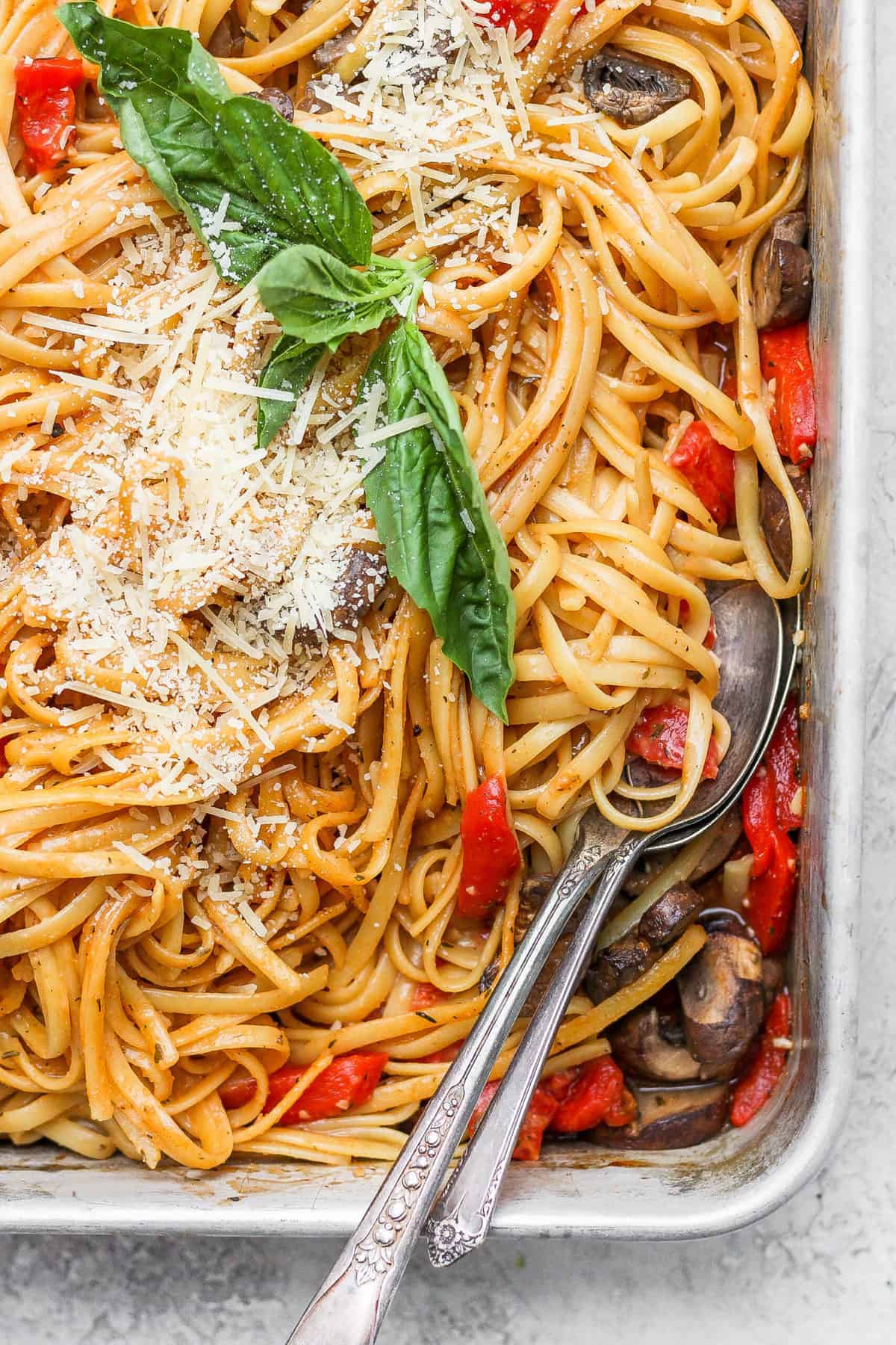 - Mushrooms– the mushrooms in this pasta soak up all of the delicious flavors in the pasta sauce while they’re baking. SO good.