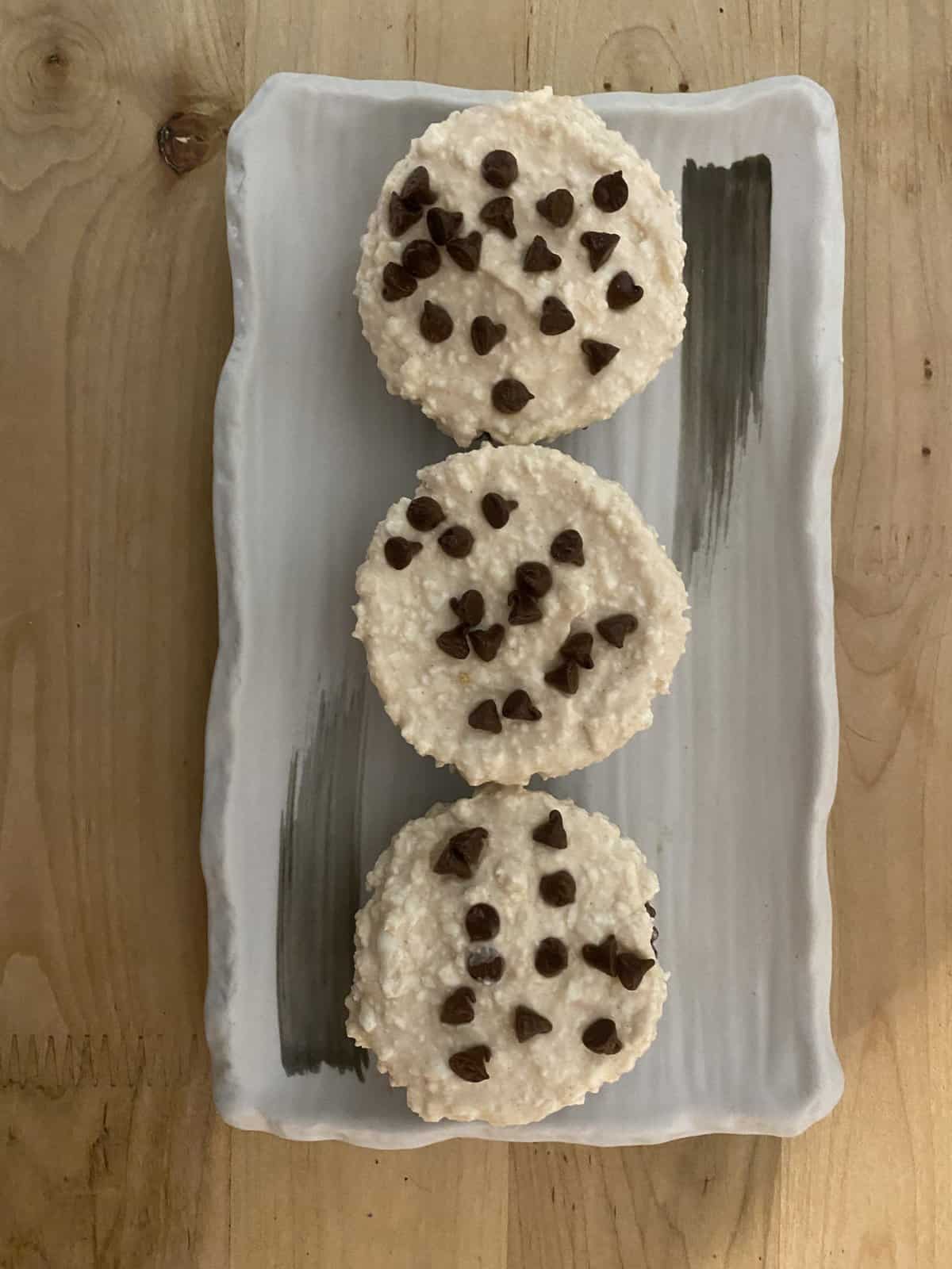 - Scoop 1.5-2 heaping tablespoons of the cottage cheese mixture to the top of the chocolate layer and evenly spread the layer out. Top with mini chocolate chips and flakey salt.