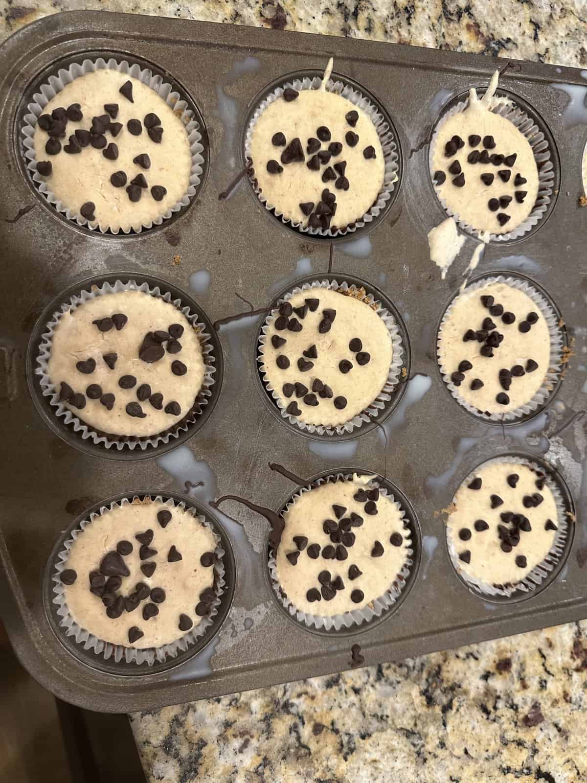 - First, preheat the oven to 350ºF and line a muffin tin with muffin liners. Generously spray with nonstick cooking spray.