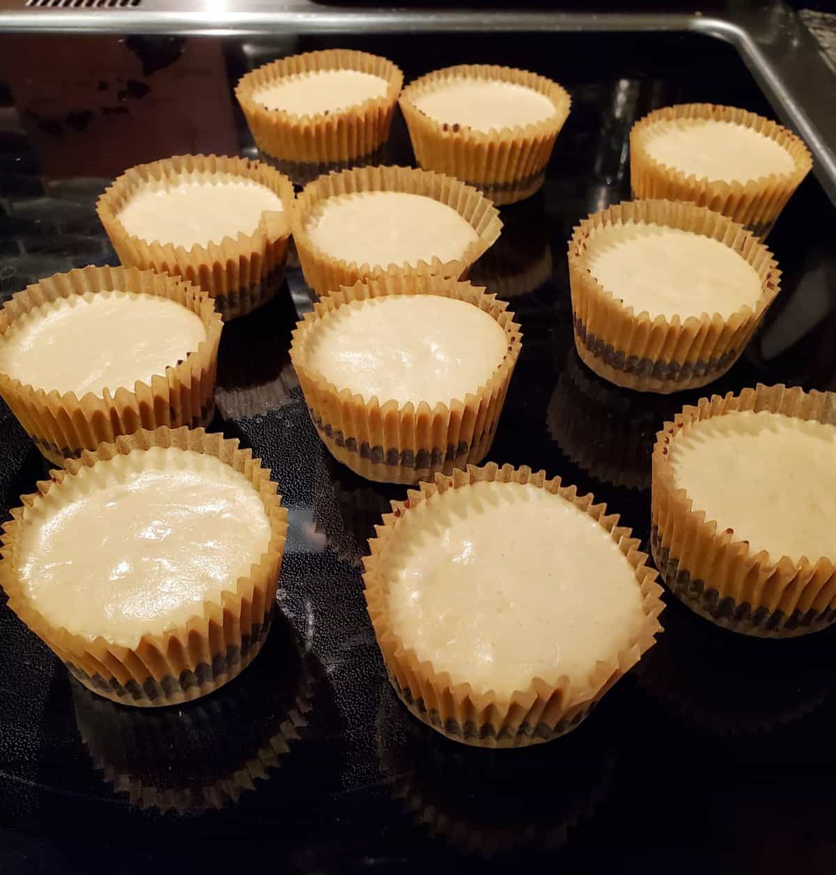 - Spoon 1 tablespoon of the graham cracker crumbs into each muffin cup. Use a spoon to press the crumble down into the liners.