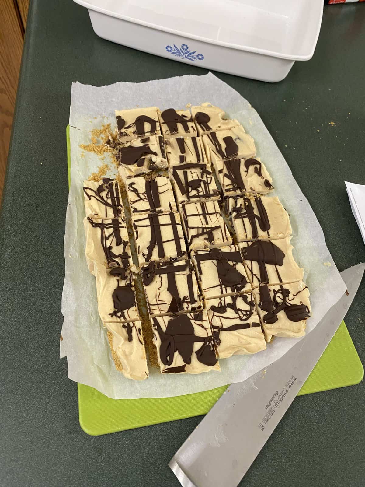 - Transfer the pan to the freezer and freeze for at least 2 hours to firm up.