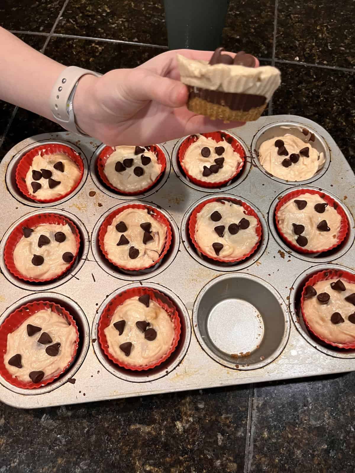 Peanut Butter Chocolate Cottage Cheese Cheesecake Cups