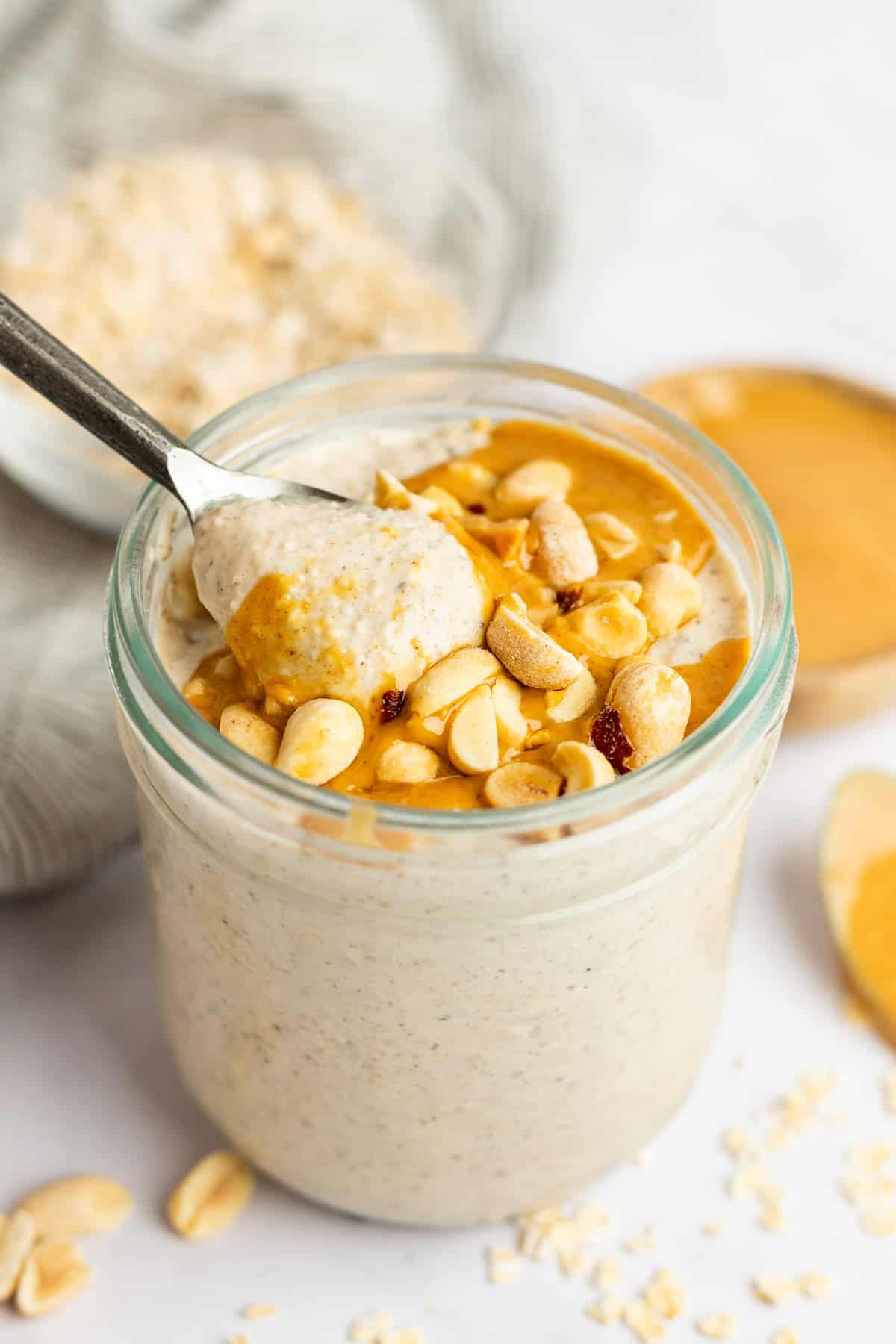 Peanut Butter Overnight Oats is the best breakfast in so many ways! This overnight oats recipe is one of our OGs and more recently, we’ve used this recipe to make blended overnight oats, a super popular Instagram trend! Check out the video and directions in the recipe card.