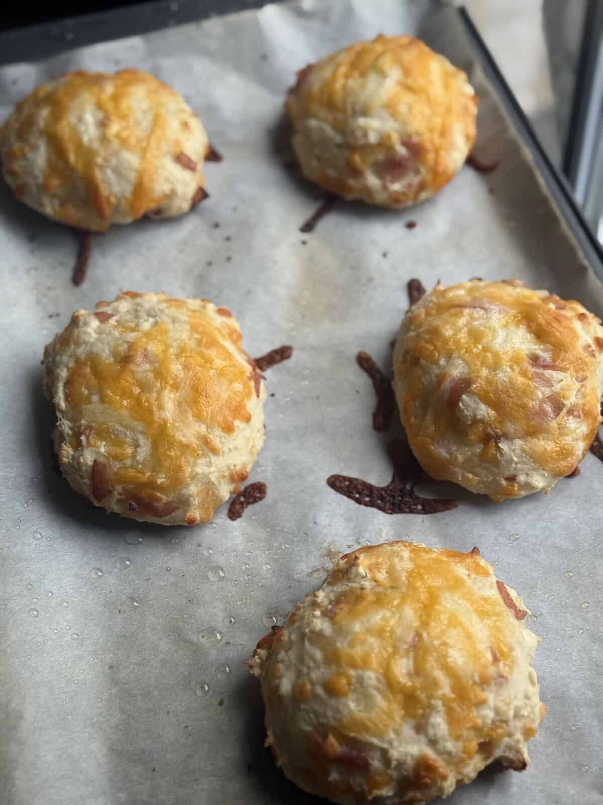 - Then, top each biscuit with 1 teaspoon of shredded cheddar cheese.