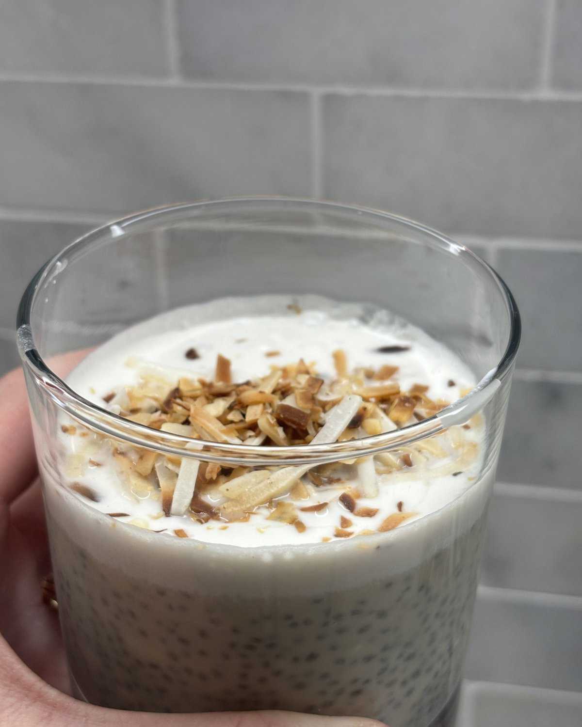 - Chia seeds: black chia seeds absorb all the creamy coconut milk, making a luscious pudding-like texture.