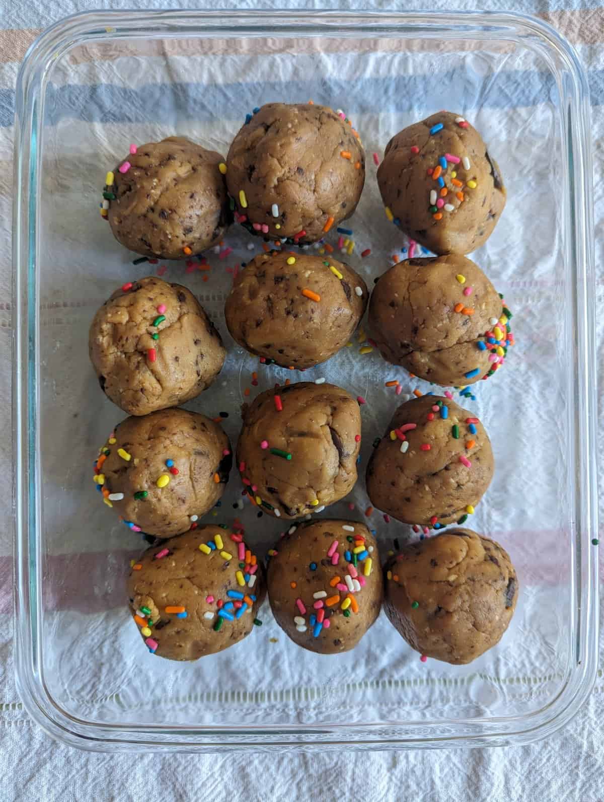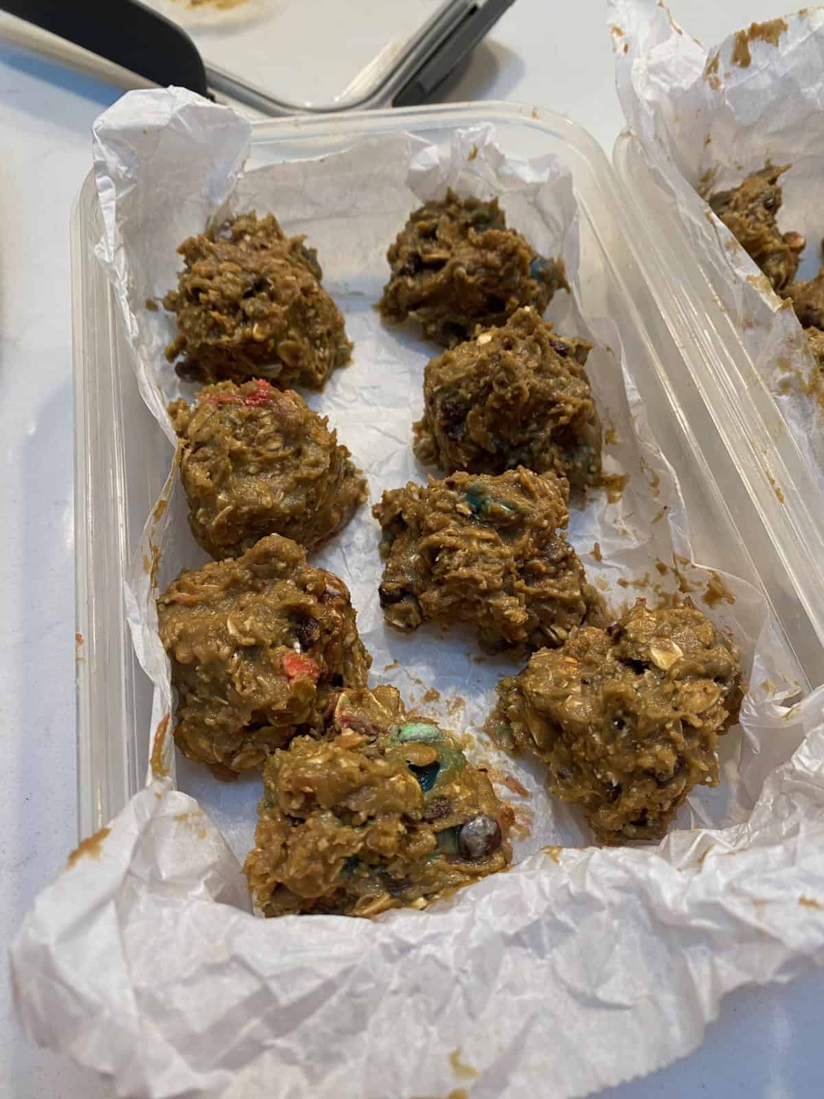 Transfer your protein monster cookie dough into a glass, airtight container and store in the fridge for up to 3 days.