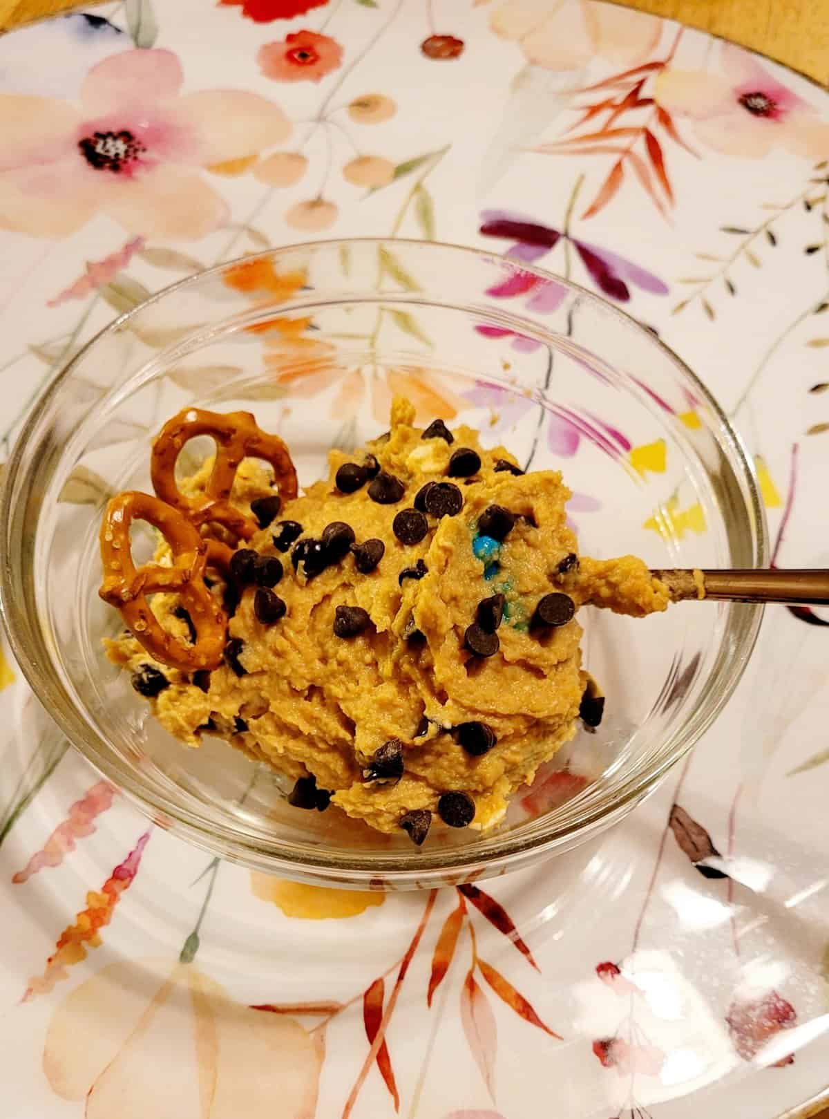 Best part about this recipe? It tastes JUST LIKE monster cookie dough without worrying about eating raw eggs. And you can eat it right out of the food processor — trust us, we have 😀