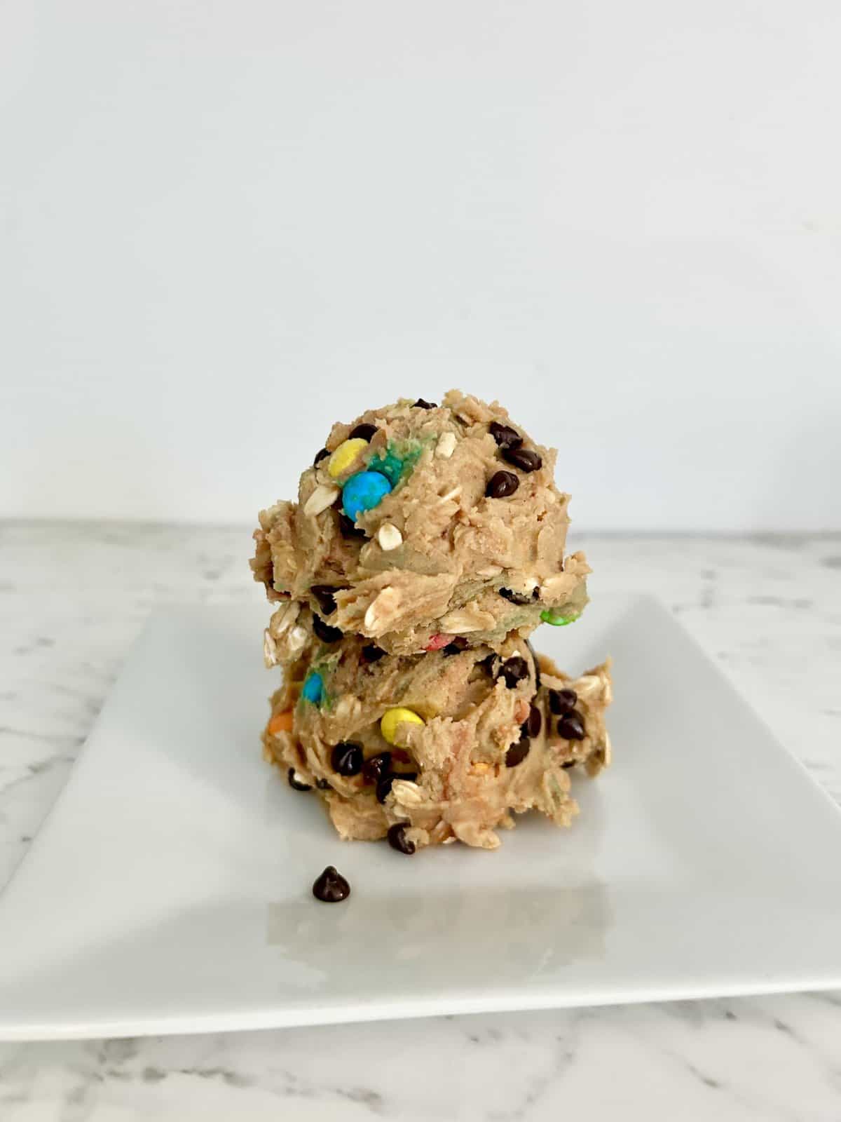 If you ask any of us what our favorite cookie to make for our friends and family no matter the occasion, it is without a doubt our flourless monster cookies. Since developing that recipe, we’ve created monster cookie oat cups and monster cookie bars. So this protein monster cookie dough felt like the perfect addition.