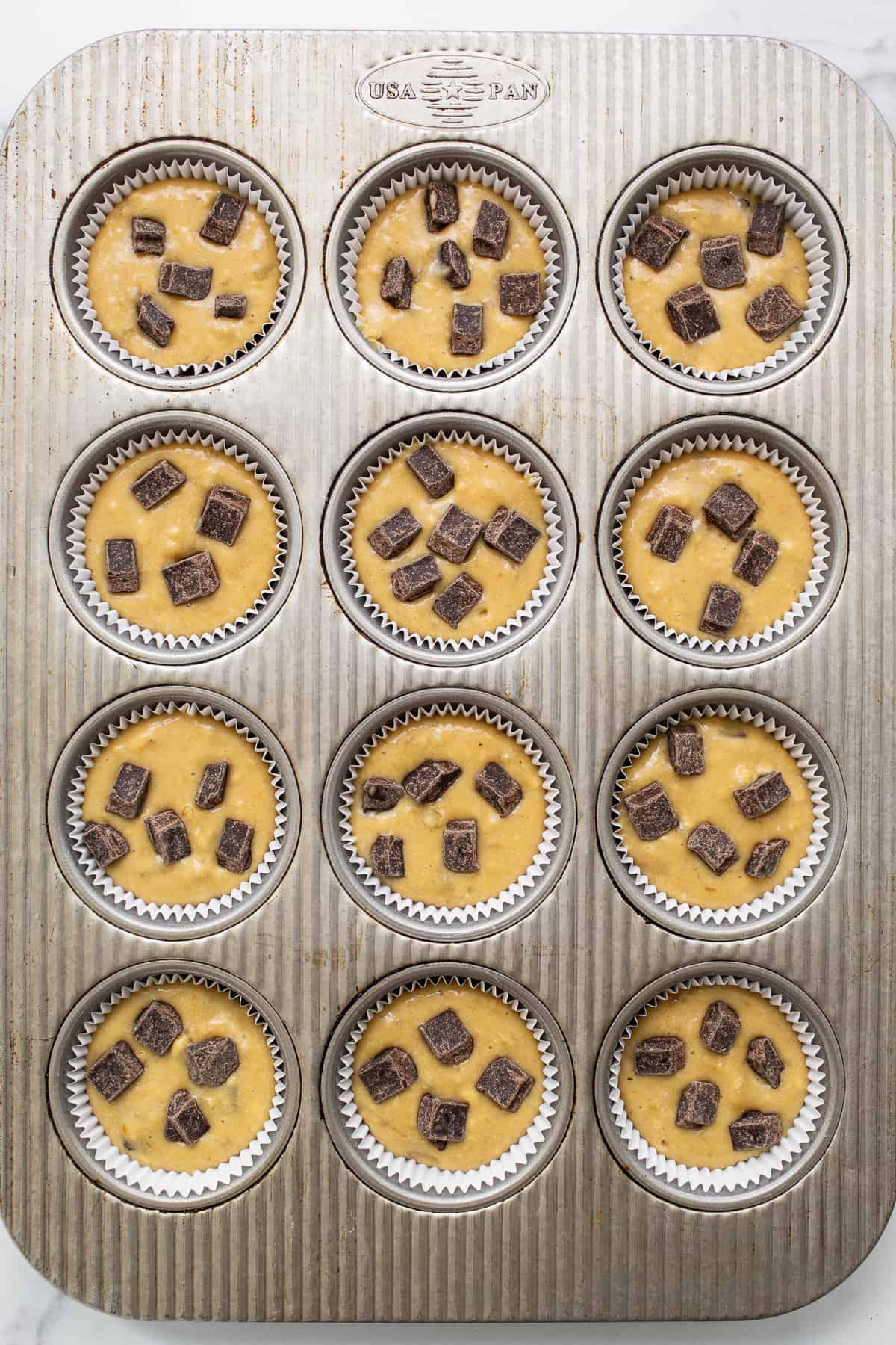 - Chocolate chunks: chocolate chunks boost the decadence level of these muffins. Feel free to use any chocolate chip of your choice.