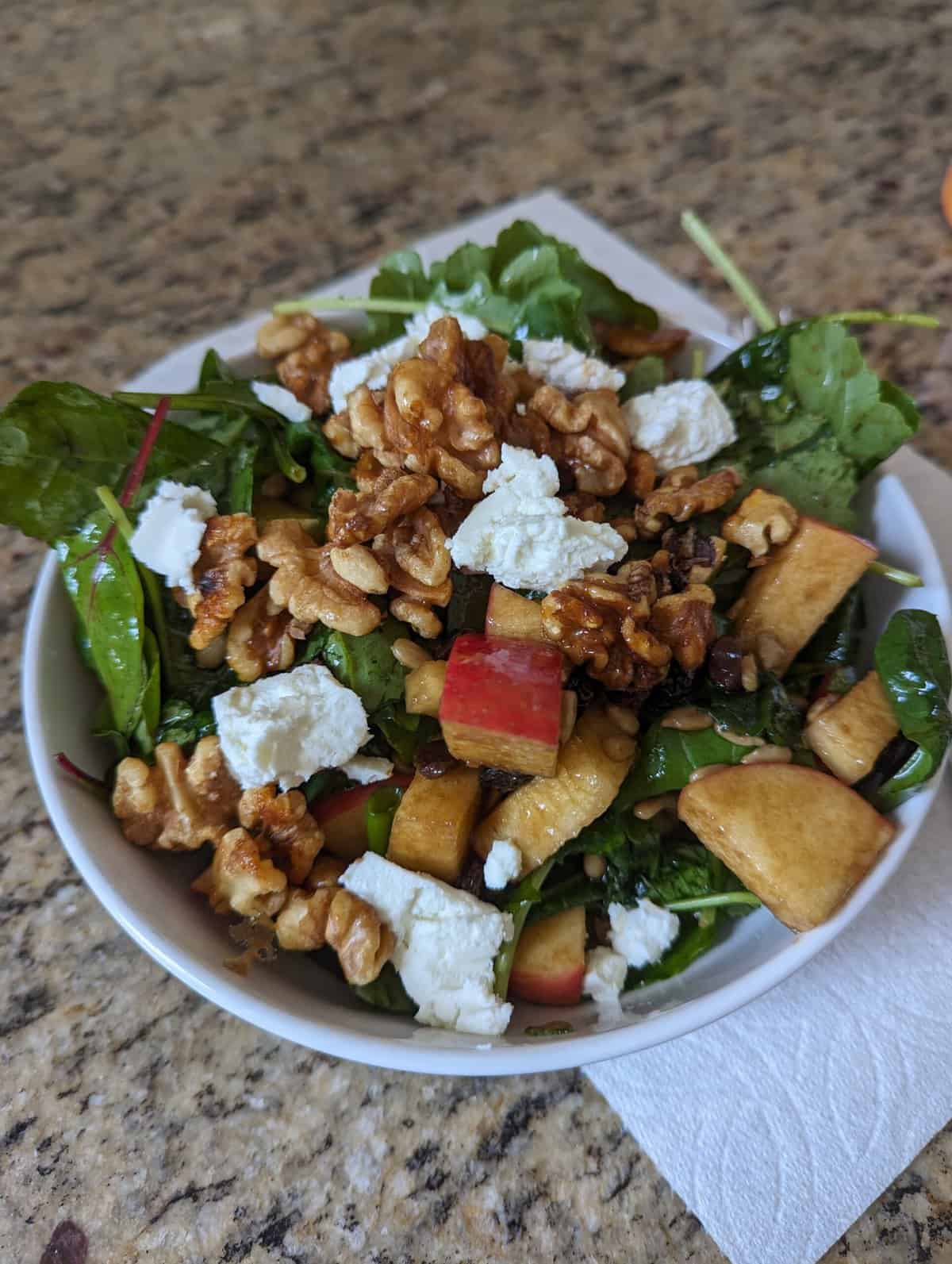 Apple: feel free to use any apple you have on hand. We used a honey crisp apple for this recipe, and it gave the salad a nice sweet tang.