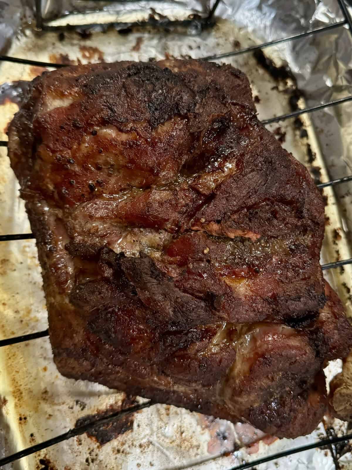 - Wire Rack: the wire rack is essential for getting that crispy crunchy crust. It allows the fat to fall off of the pork shoulder and land on the pan. This will let the outside get perfectly browned and crunchy.