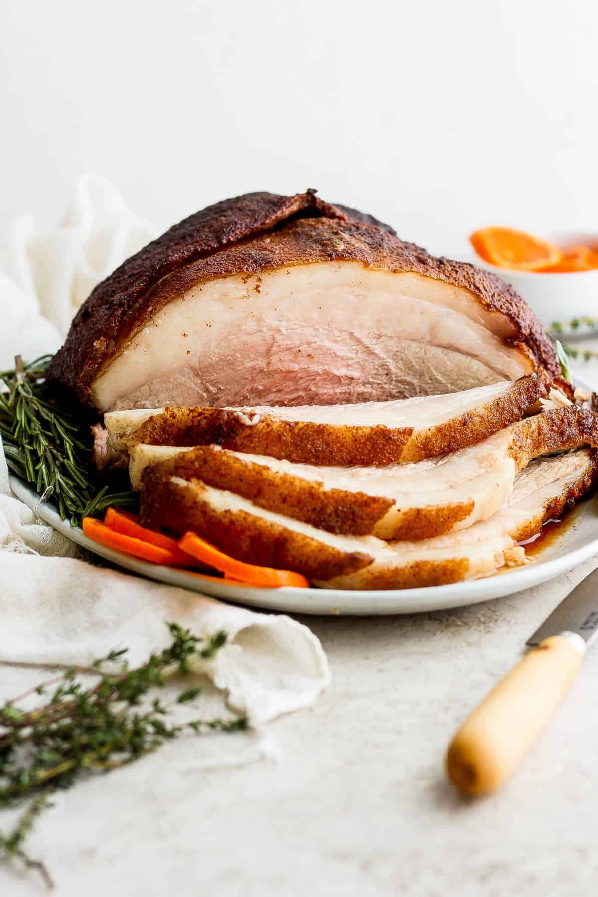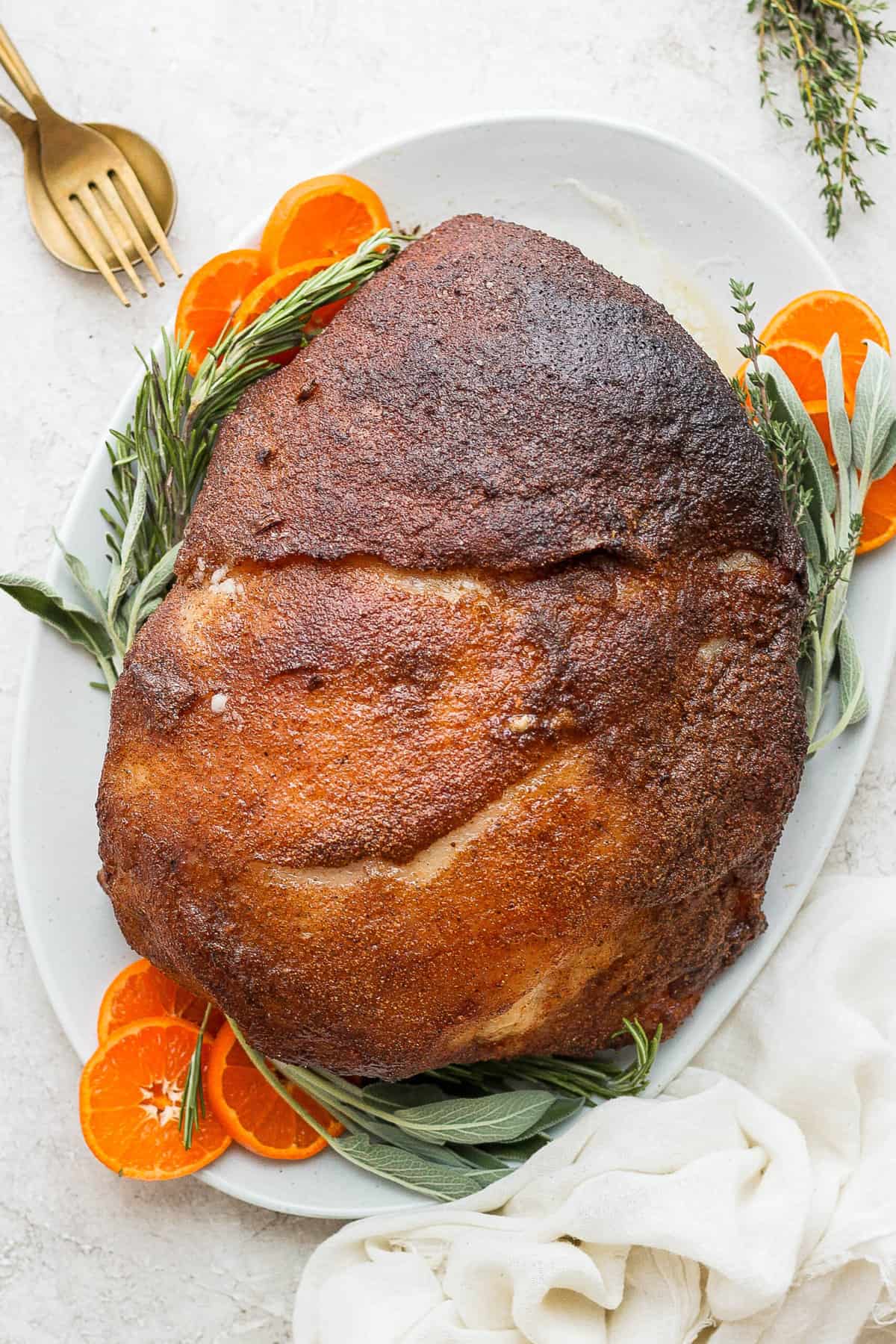 Smoked ham is a delicious and versatile dish that is perfect for any holiday meal or fancy dinner. This smoked ham recipe is brined overnight, dry-rubbed, and smoked for 2 hours.