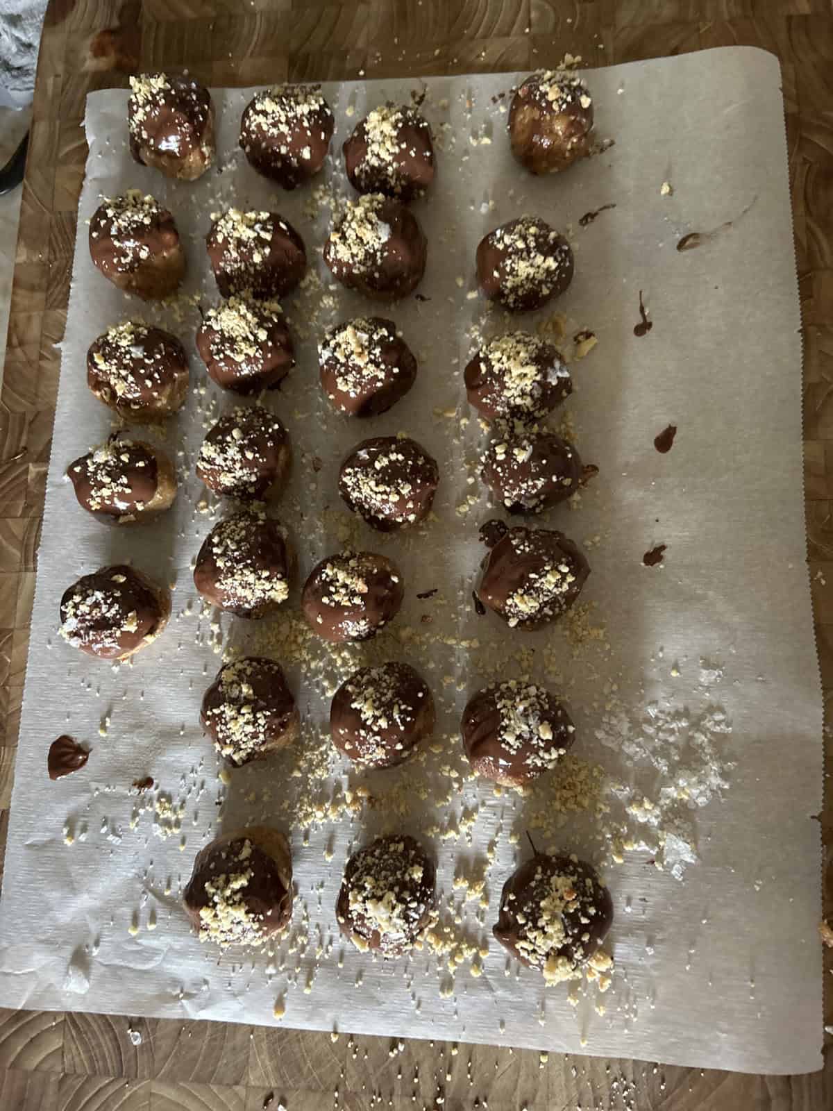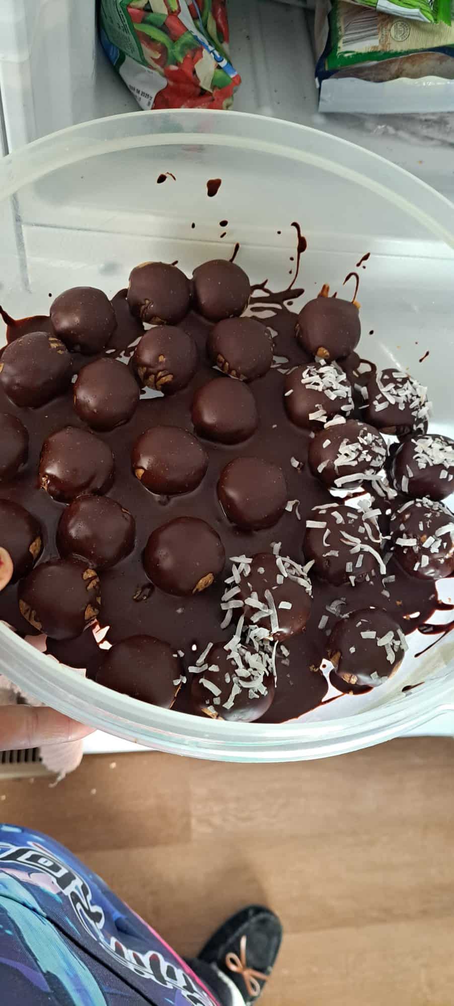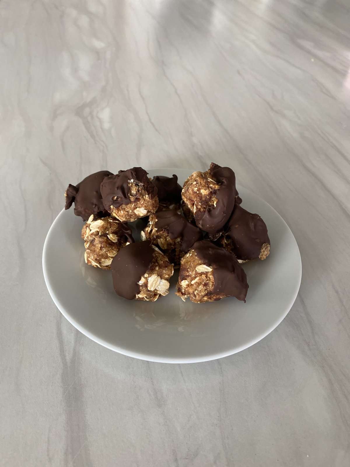 - Set the balls on a plate and transfer them to the freezer for 20 minutes or until the chocolate has set.