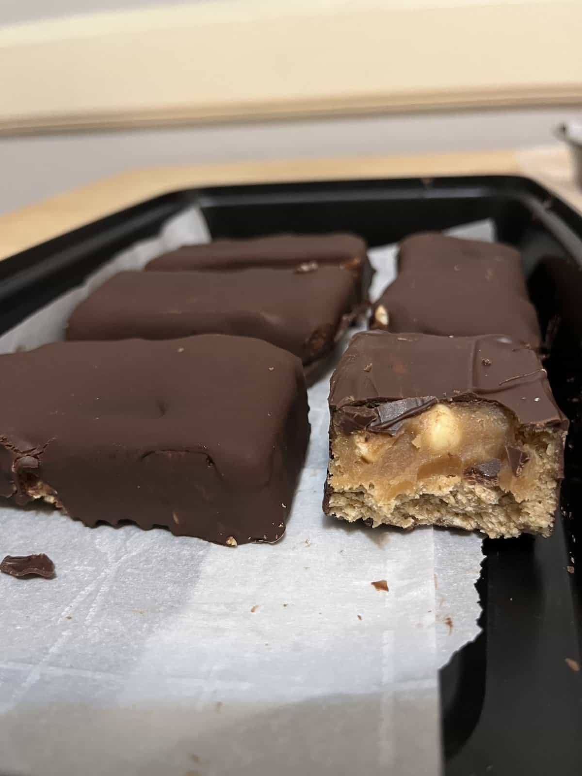 This is my favorite recipe in the protein dessert series! I made bite size Snickers rather than bars and they didn’t last long!