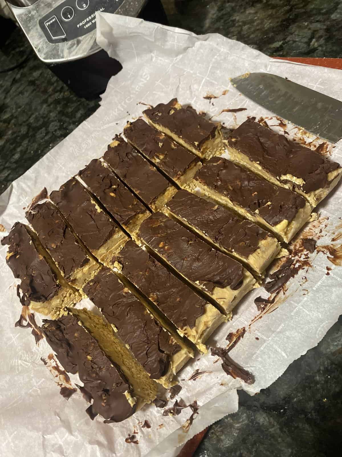 - Transfer all of the bars to a parchment-lined plate or baking sheet and return them to the freezer to set.