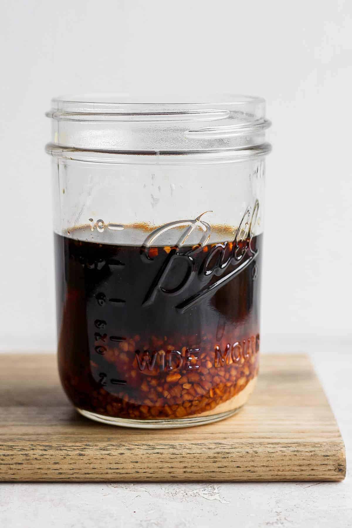 Don’t have a mason jar? You can do this in a small bowl and use a whisk to mix everything together.