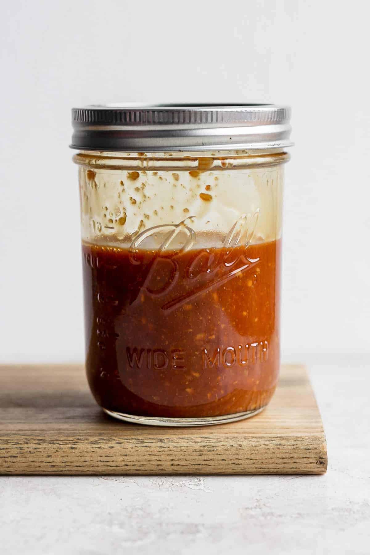 - Place all of the ingredients for the stir fry sauce into a mason jar and cover.