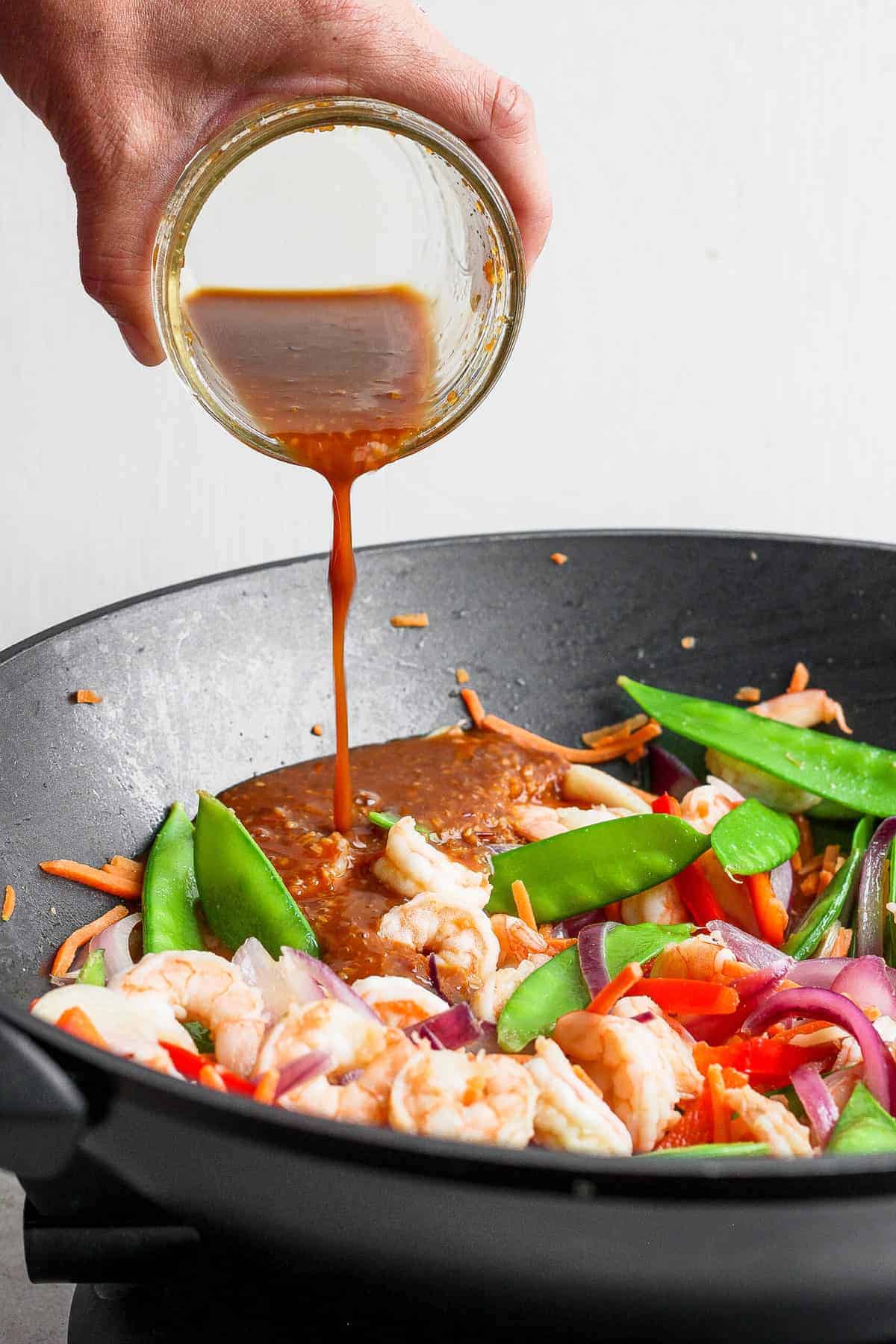 Whether you’re making chicken stir fry, a veggie stir fry, or this shrimp stir fry, the sauce can easily get watery.