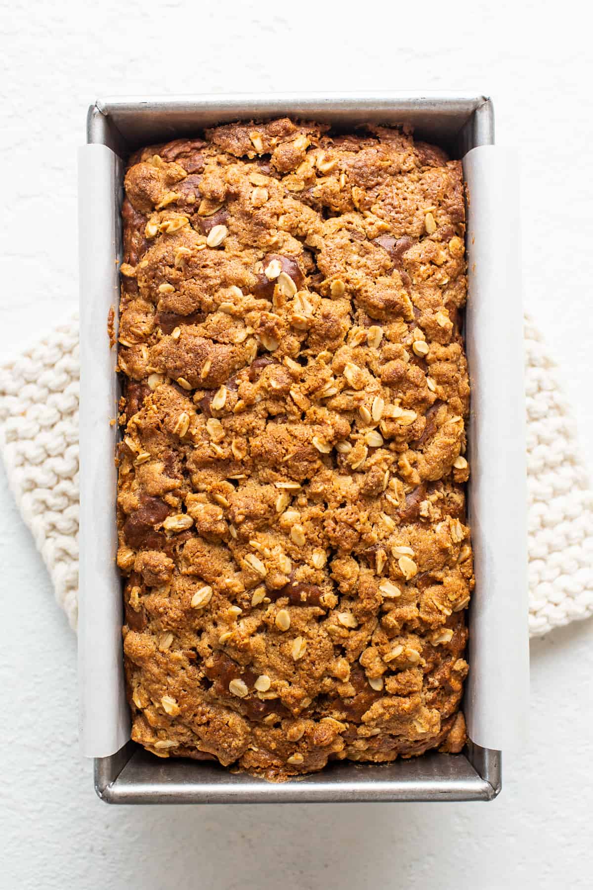 The streusel topping reminds me of coffee cake and is made with flour, butter, oats, peanut butter, and brown sugar. It’s truly what makes this bread so special!